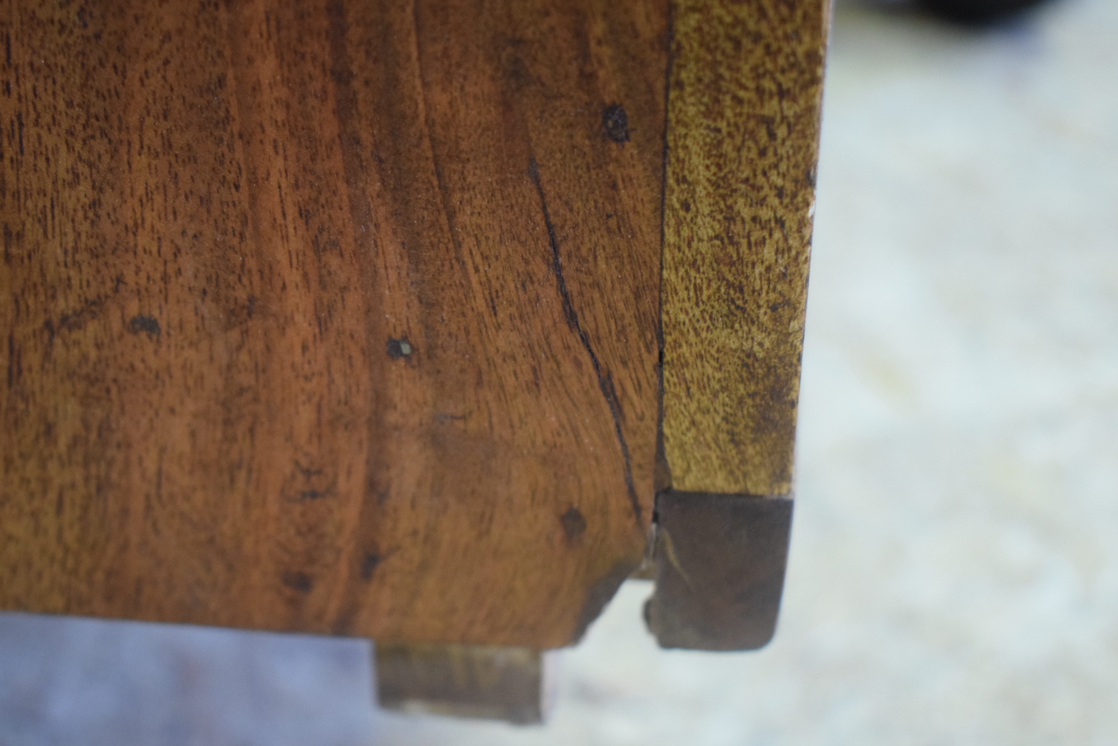 Als natürliches Produkt ist Holz auch in Form eines Möbelstücks noch immer sehr reaktiv, wenn es zu Änderungen in Luftfeuchtigkeit und Temperatur kommt. Das Holz nimmt Feuchtigkeit leicht auf und trocknet auch leicht aus, wenn es zu großen Schwankungen kommt. Gib deshalb vor allem auf gleichmäßige Temperaturen und eine moderate Luftfeuchtigkeit acht und lass es nicht zu plötzlichen Änderungen kommen, damit das Holz nicht reißt oder sich verbiegt. Stelle das Möbelstück fern von Hitzequellen auf und vermeide, dass es im direkten Luftzug einer Belüftungsanlage steht.