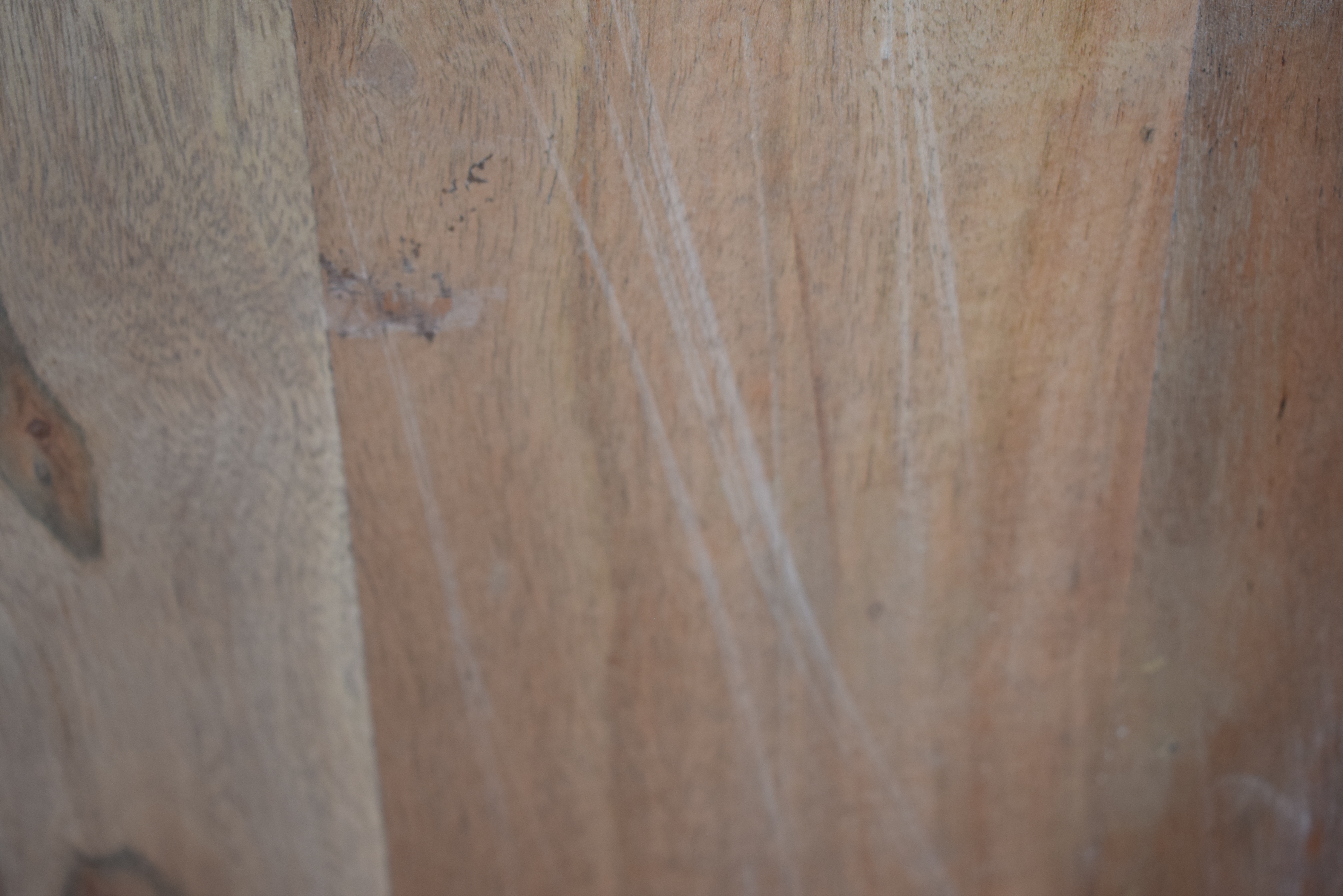Beim Abstellen von Dekorationsgegenständen oder Lampen achte bitte darauf, dass keine Kratzer im Holz entstehen und ändere die Position von Zeit zu Zeit, damit auch hier keine Farbveränderungen zustande kommen.