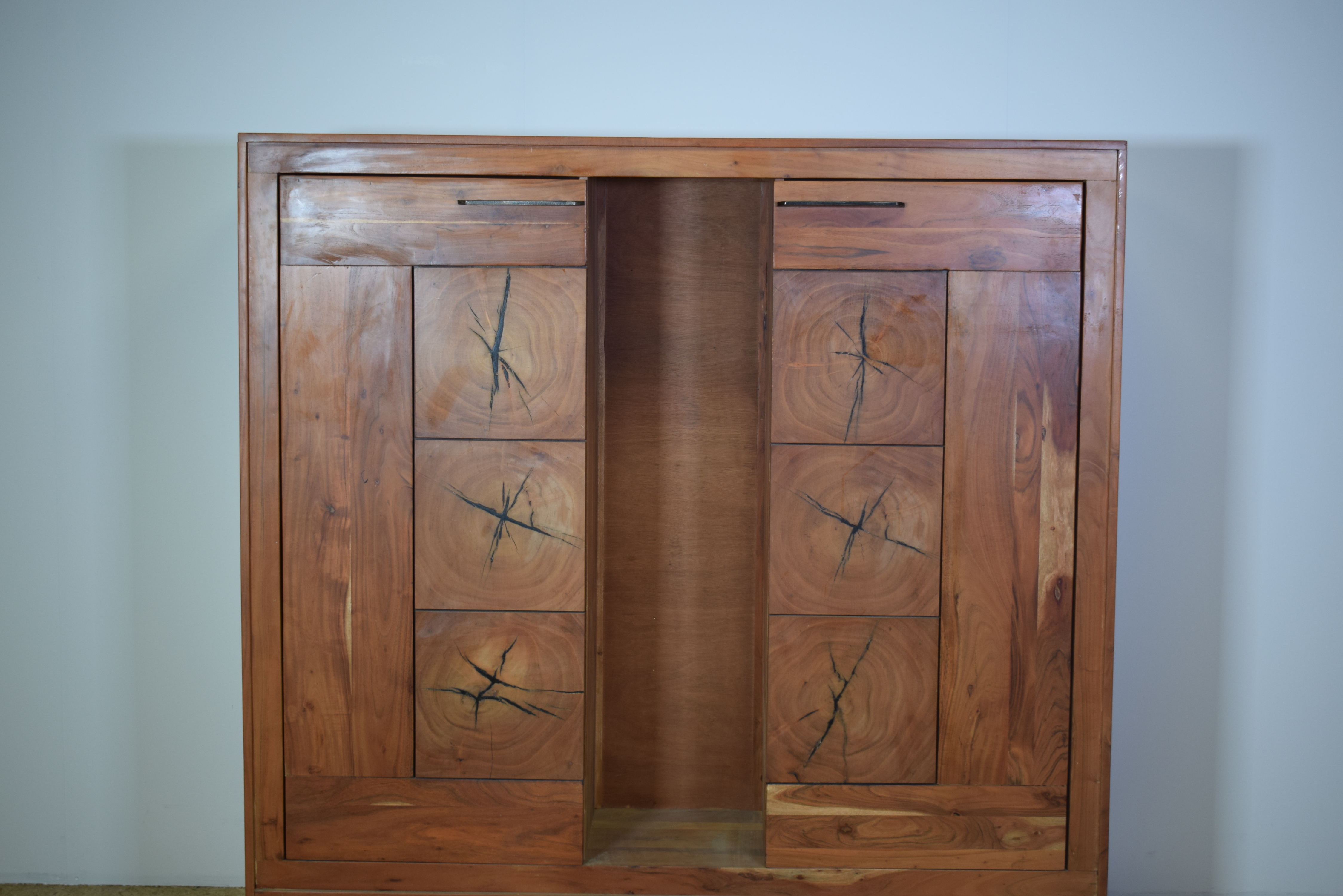 werden. Alle Schubfächer besitzen stilgerechte Griffe aus Eisen. Der Schrank harmoniert