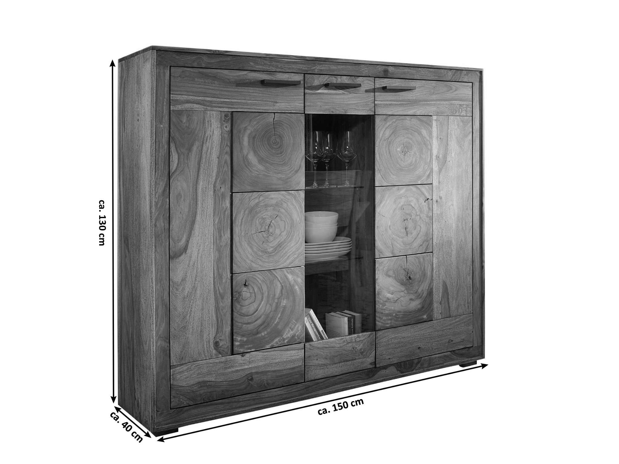 - Gesamtbreite: ca. 130 cm | Gesamttiefe: ca. 40 cm | Gesamthöhe: ca. 150 cm