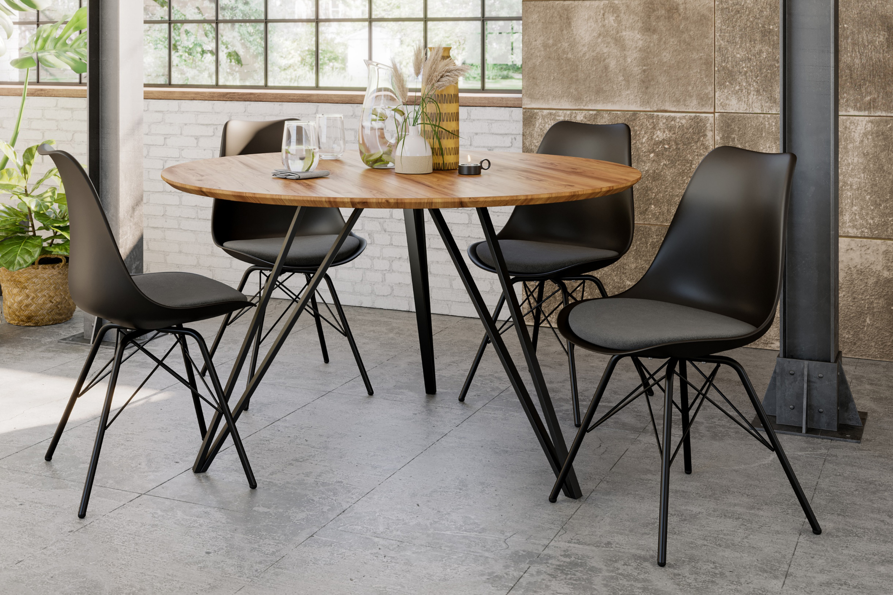 - Ausführung: Massivholz Akazie, Tischbeine schwarz
