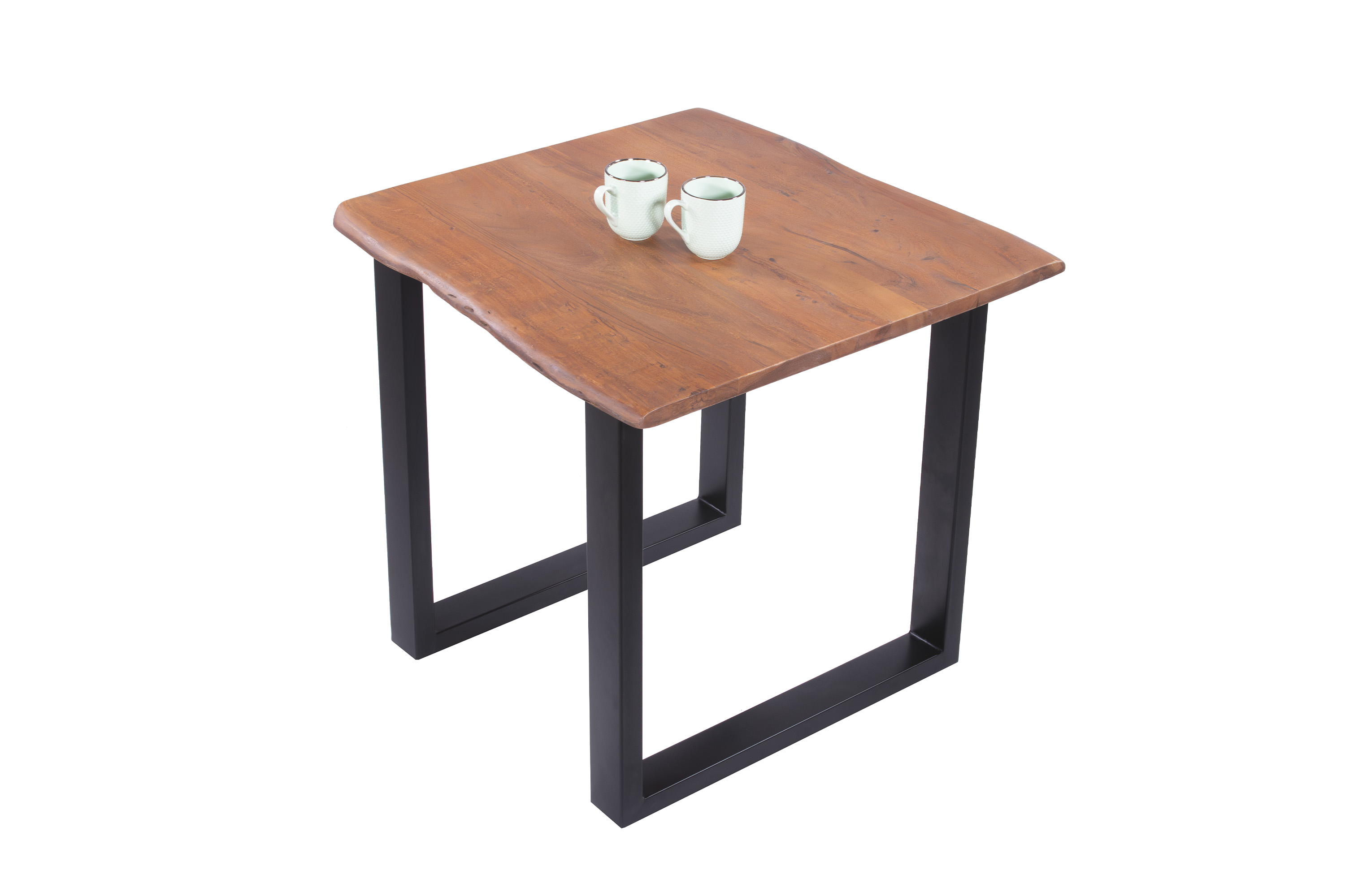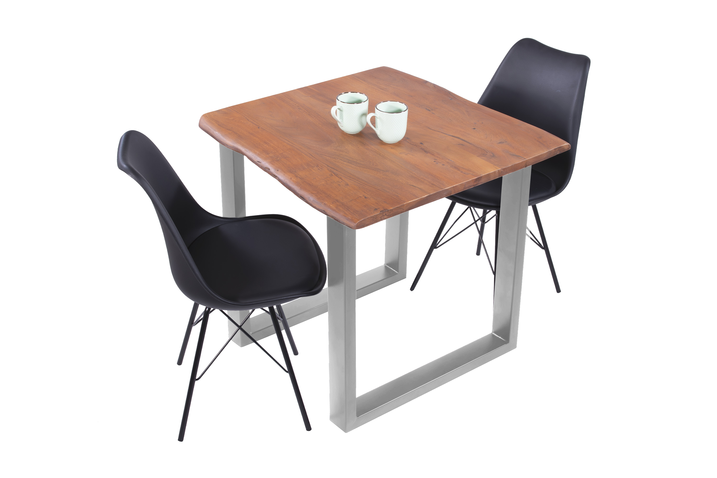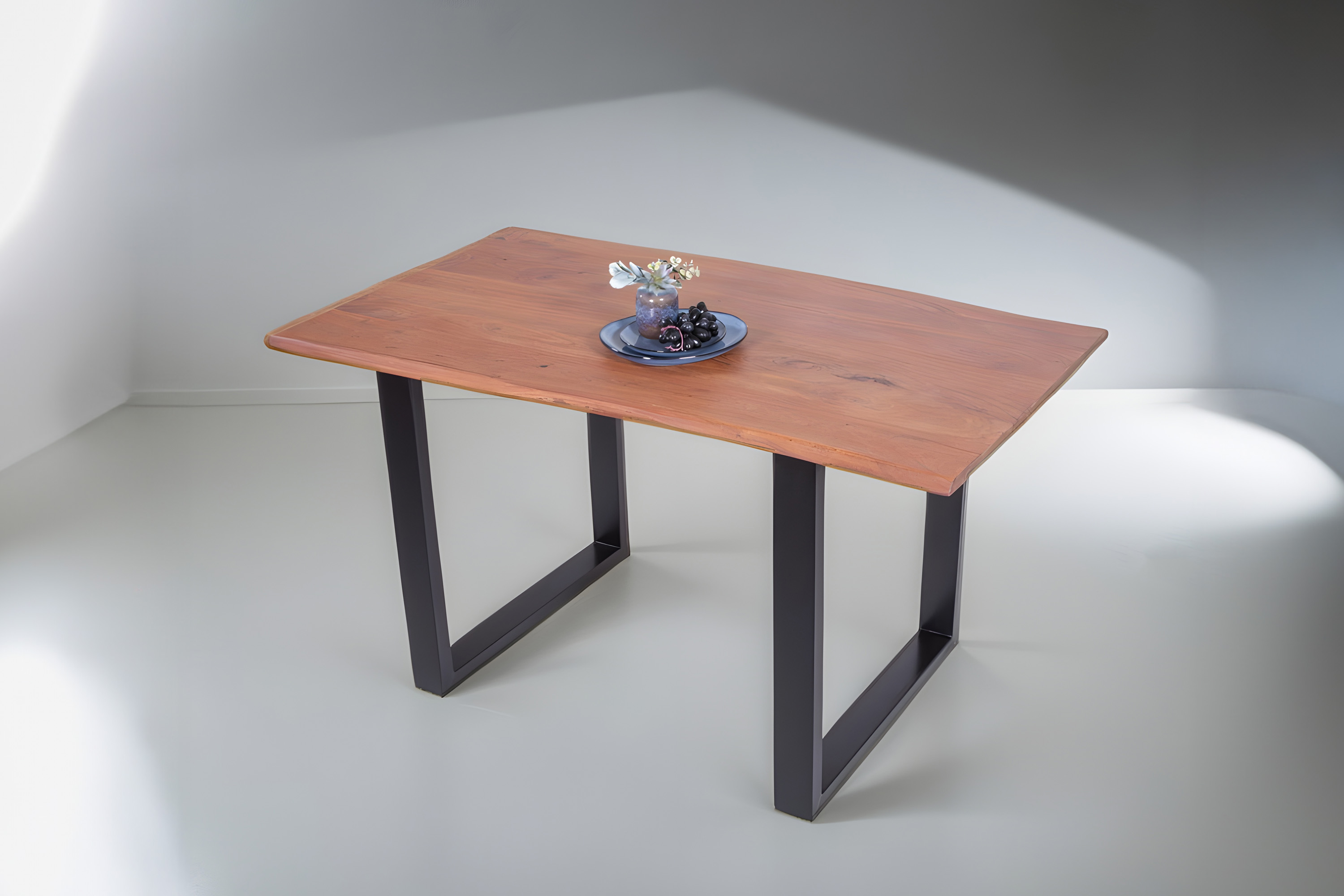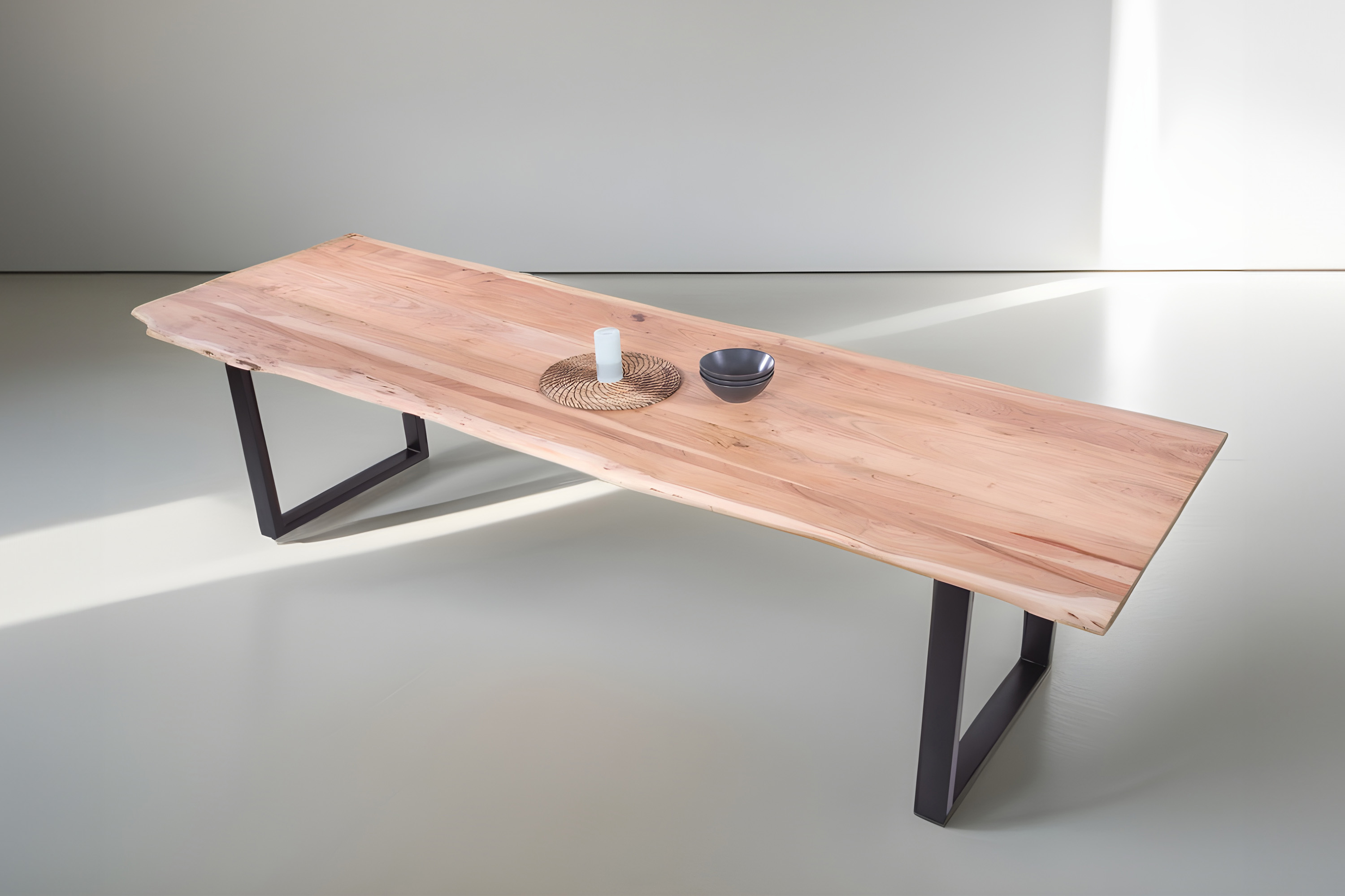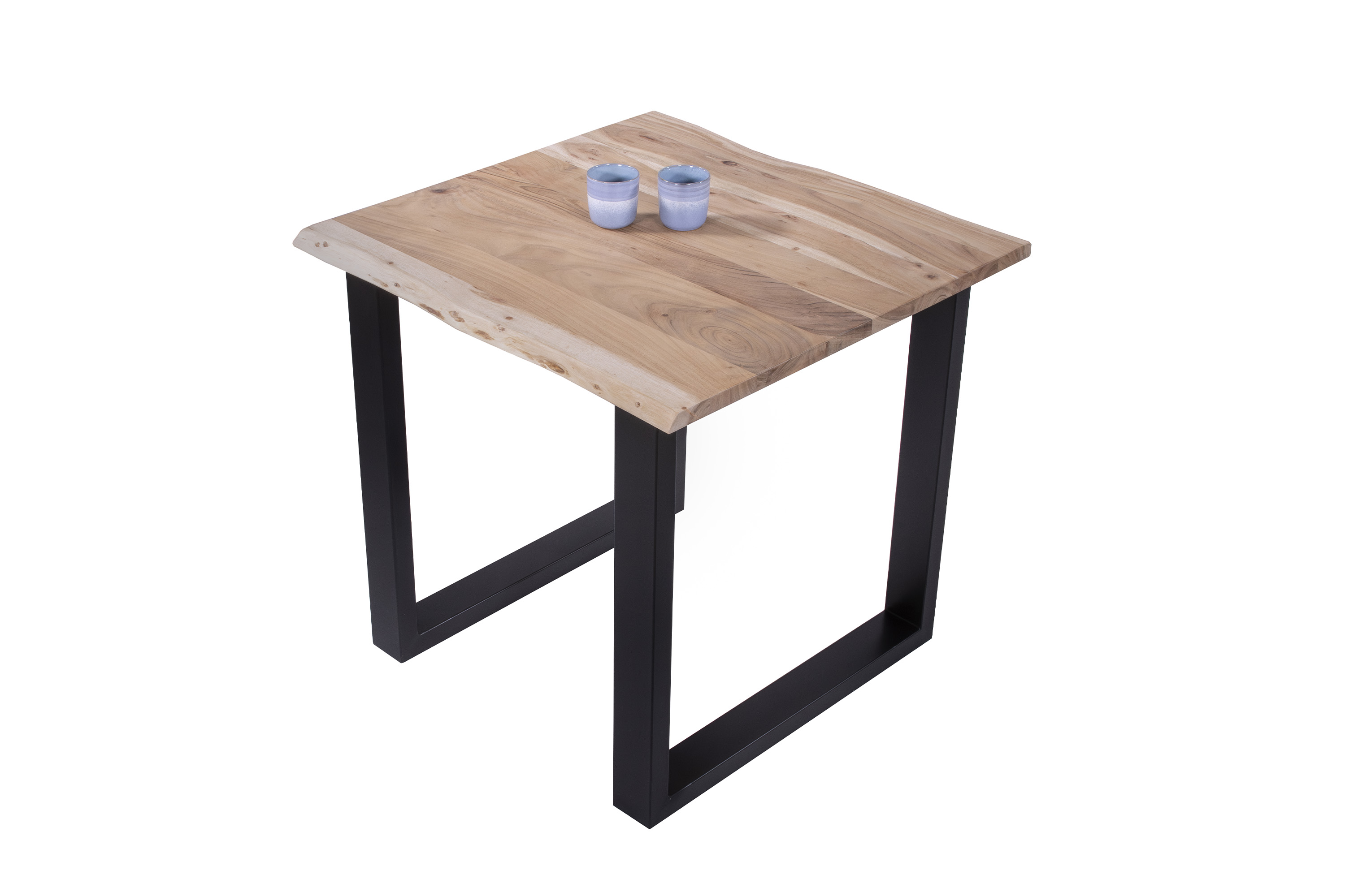 Die Tischkanten wurden direkt aus dem Baumstamm geschnitten und behalten ihre natürliche Form bei, was jeden Baumkantentisch zu einem Unikat macht. Die Metallbeine sind ein besonderes Highlight, denn das elegante U-Gestell aus hochwertigem Metall setzt gezielte Akzente im Industrial-Design. Durch diese Kombination wirkt der Tisch sowohl rustikal als auch modern und fügt sich nahtlos in jedes Ambiente ein.