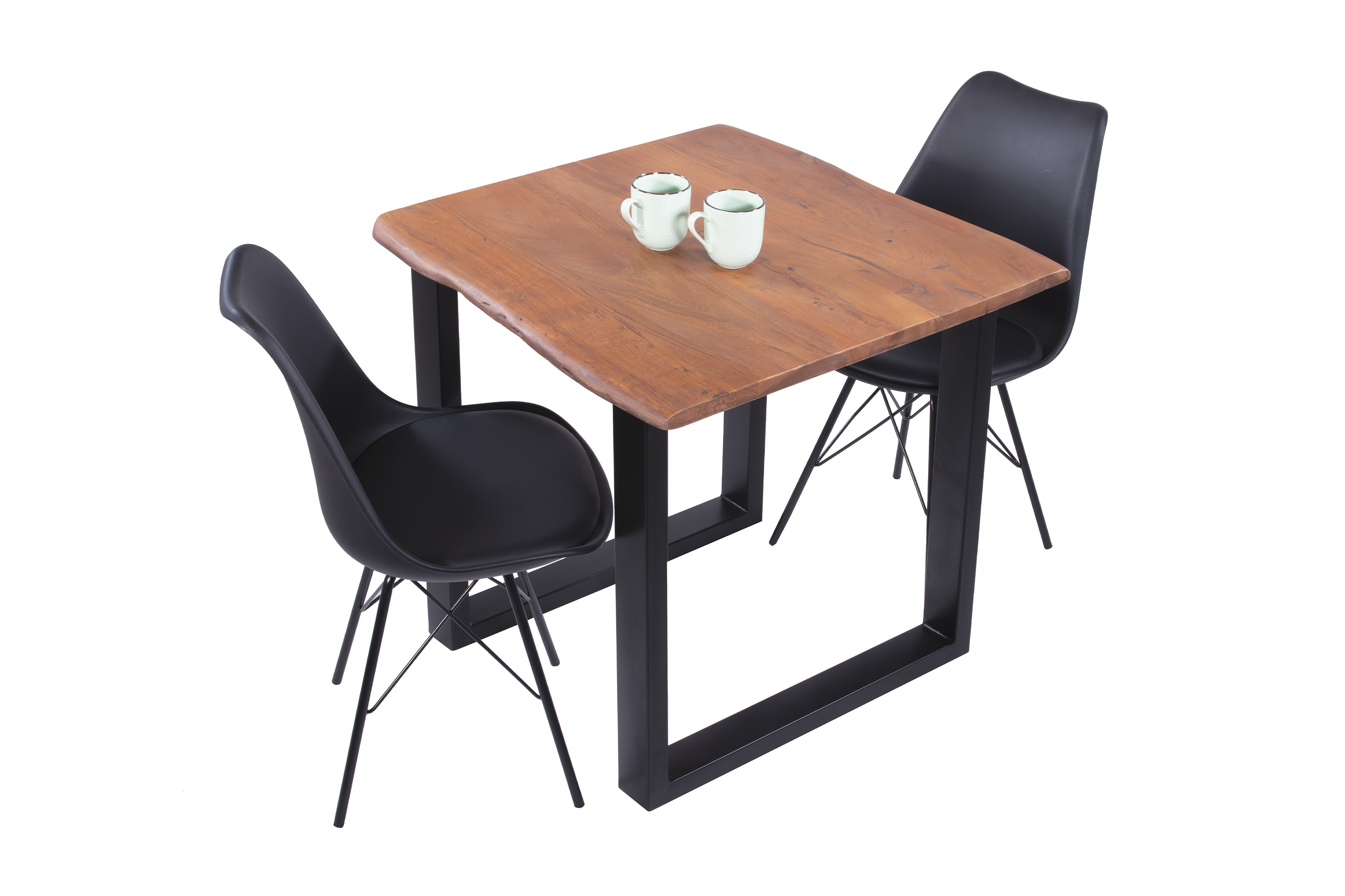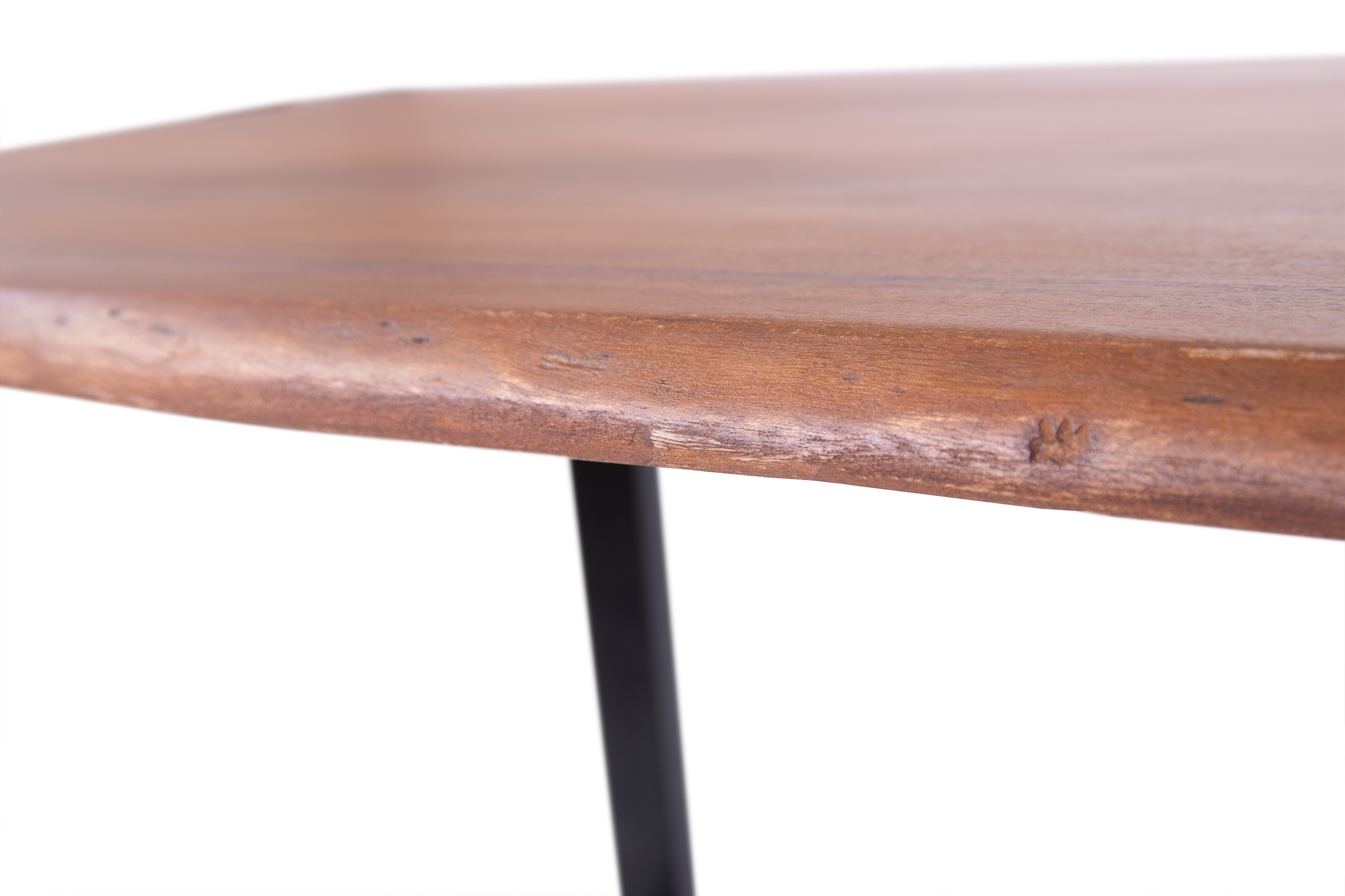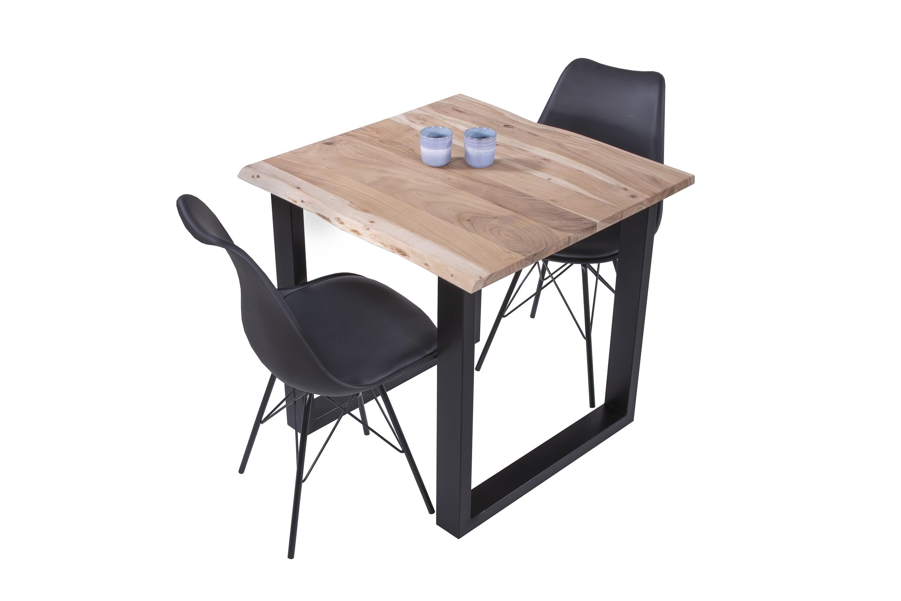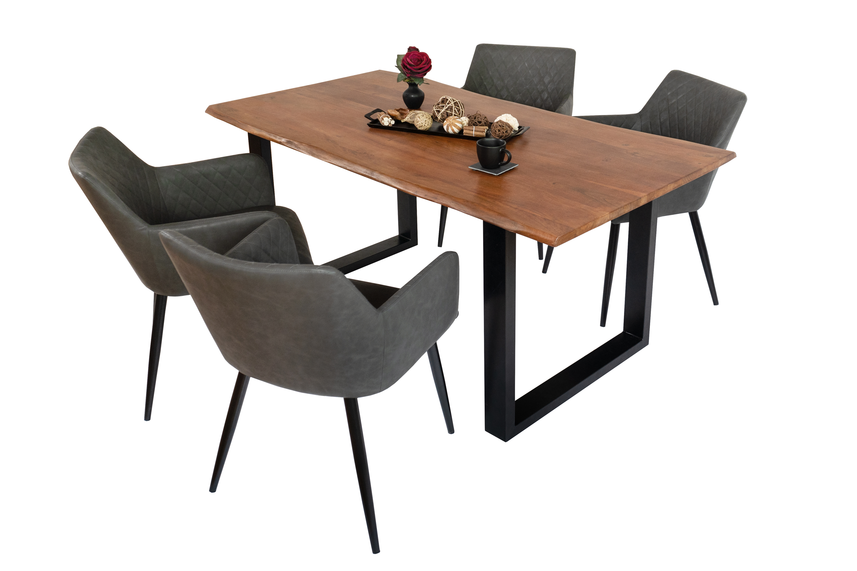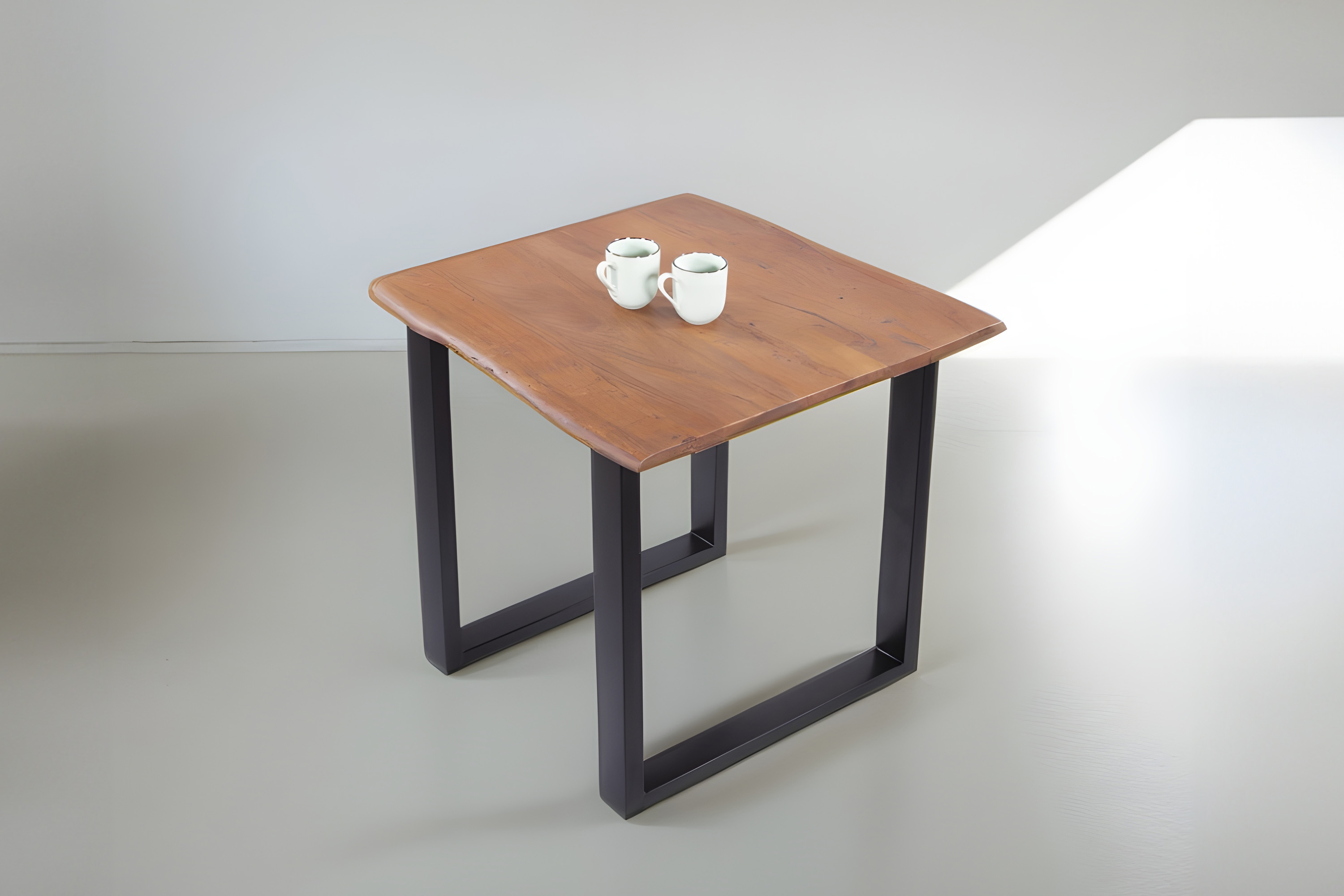 Die Tischkanten wurden direkt aus dem Baumstamm geschnitten und behalten ihre natürliche Form bei, was jeden Baumkantentisch zu einem Unikat macht. Die Metallbeine sind ein besonderes Highlight, denn das elegante U-Gestell aus hochwertigem Metall setzt gezielte Akzente im Industrial-Design. Durch diese Kombination wirkt der Tisch sowohl rustikal als auch modern und fügt sich nahtlos in jedes Ambiente ein.