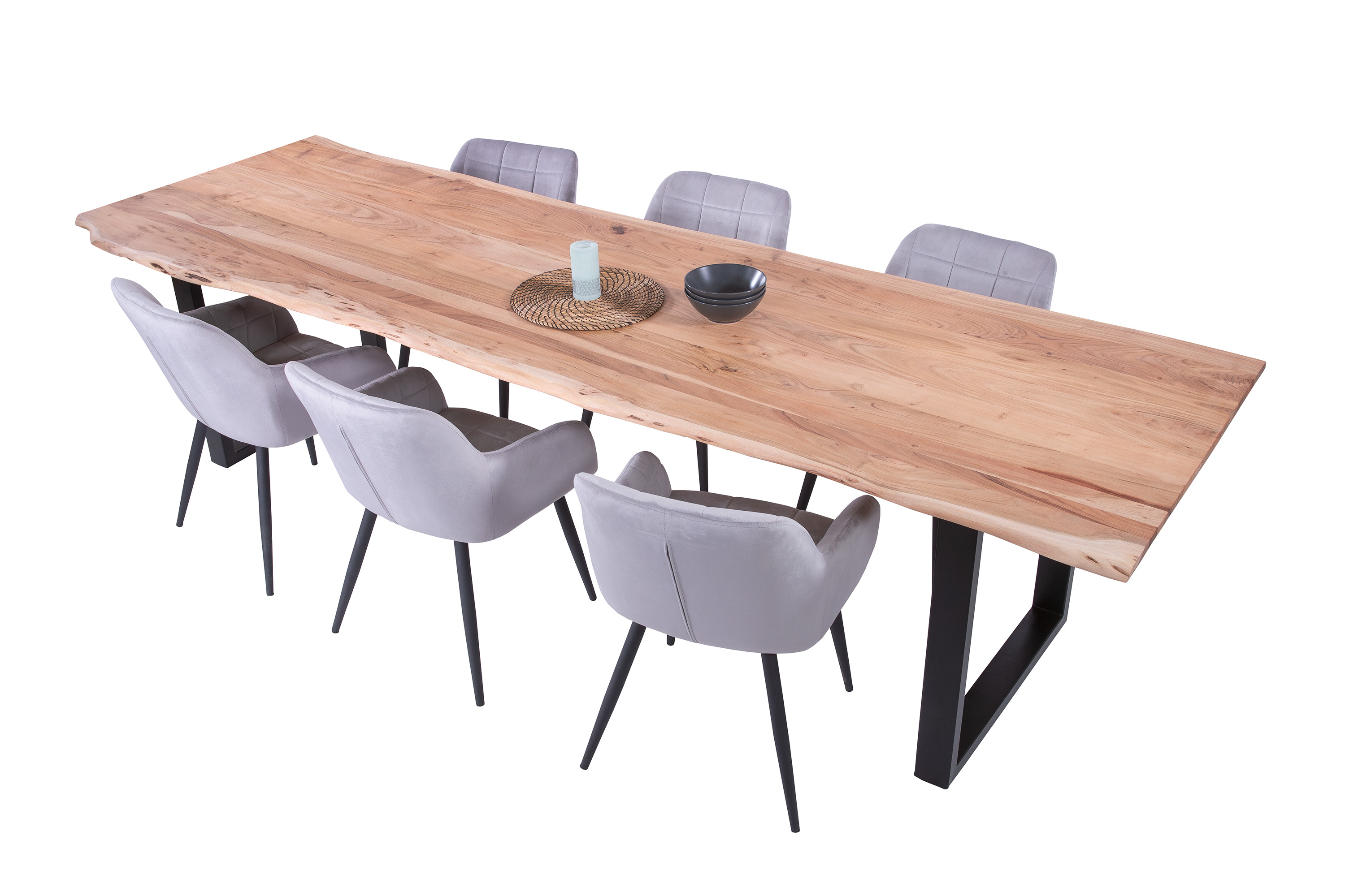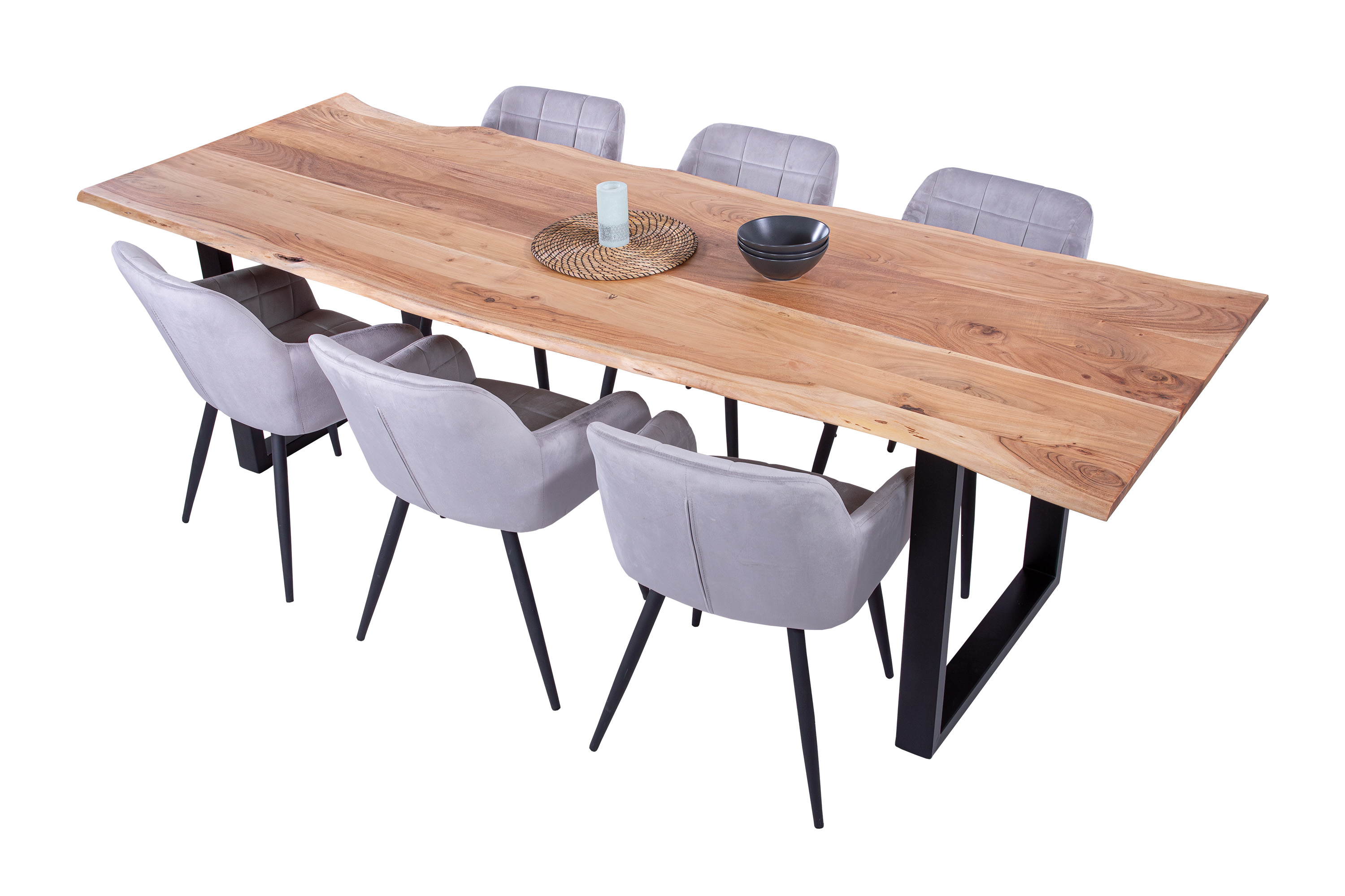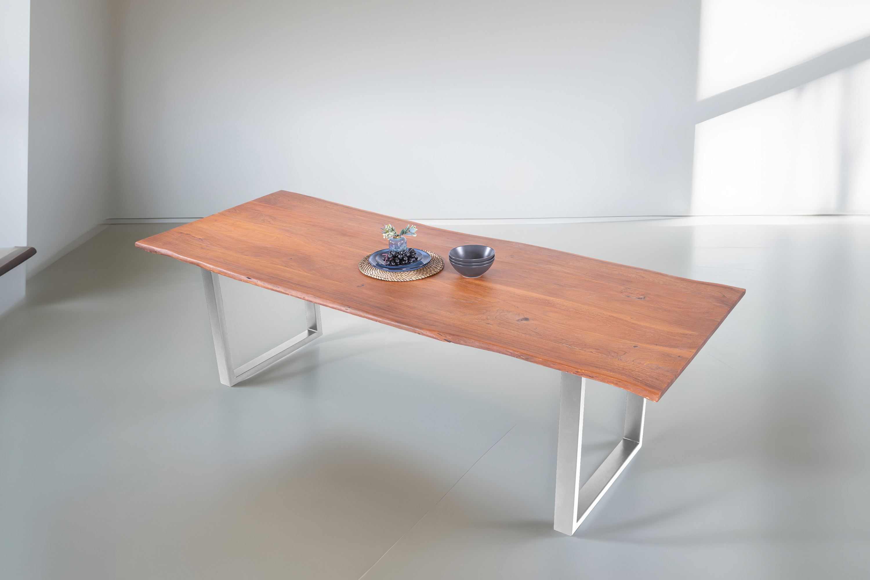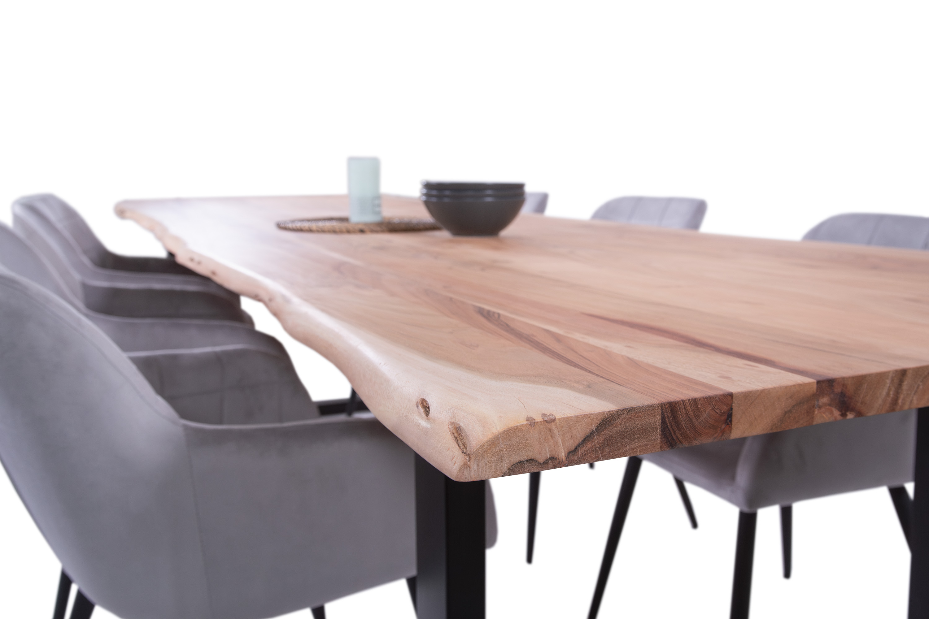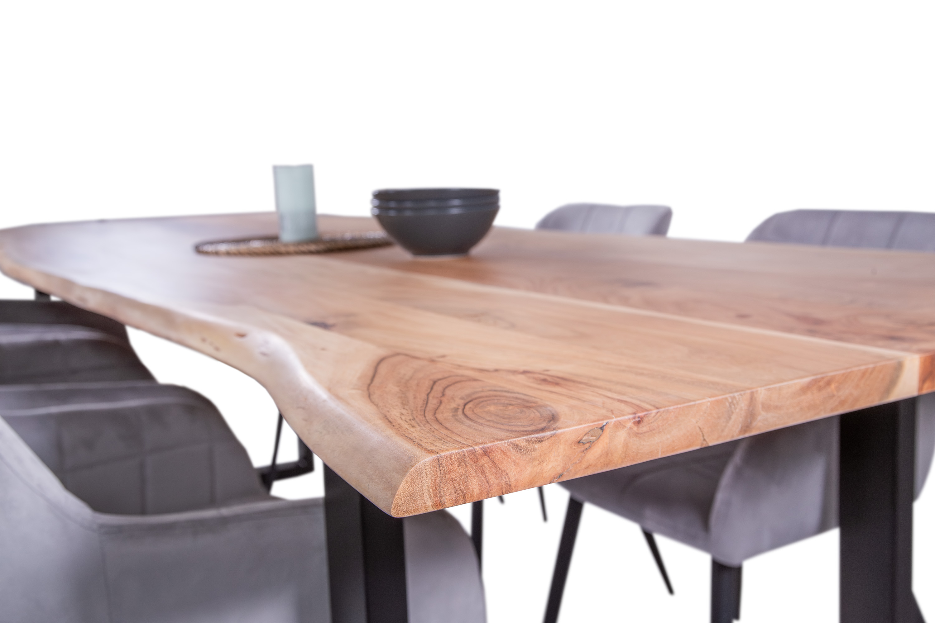 Für die Herstellung unseres Holztisches Adella verwenden wir nur das beste Akazienholz. Dieses Holz zeichnet sich durch seine Härte und Widerstandsfähigkeit aus, wodurch der fertige Tisch besonders belastbar und robust ist. Das hochwertige und natürliche Erscheinungsbild macht den Baumkantentisch Adella zum Mittelpunkt Ihres Interieurs. Er lädt zur Geselligkeit ein und ist ein exklusiver Eyecatcher, der sich in jeden Wohnstil integrieren lässt.