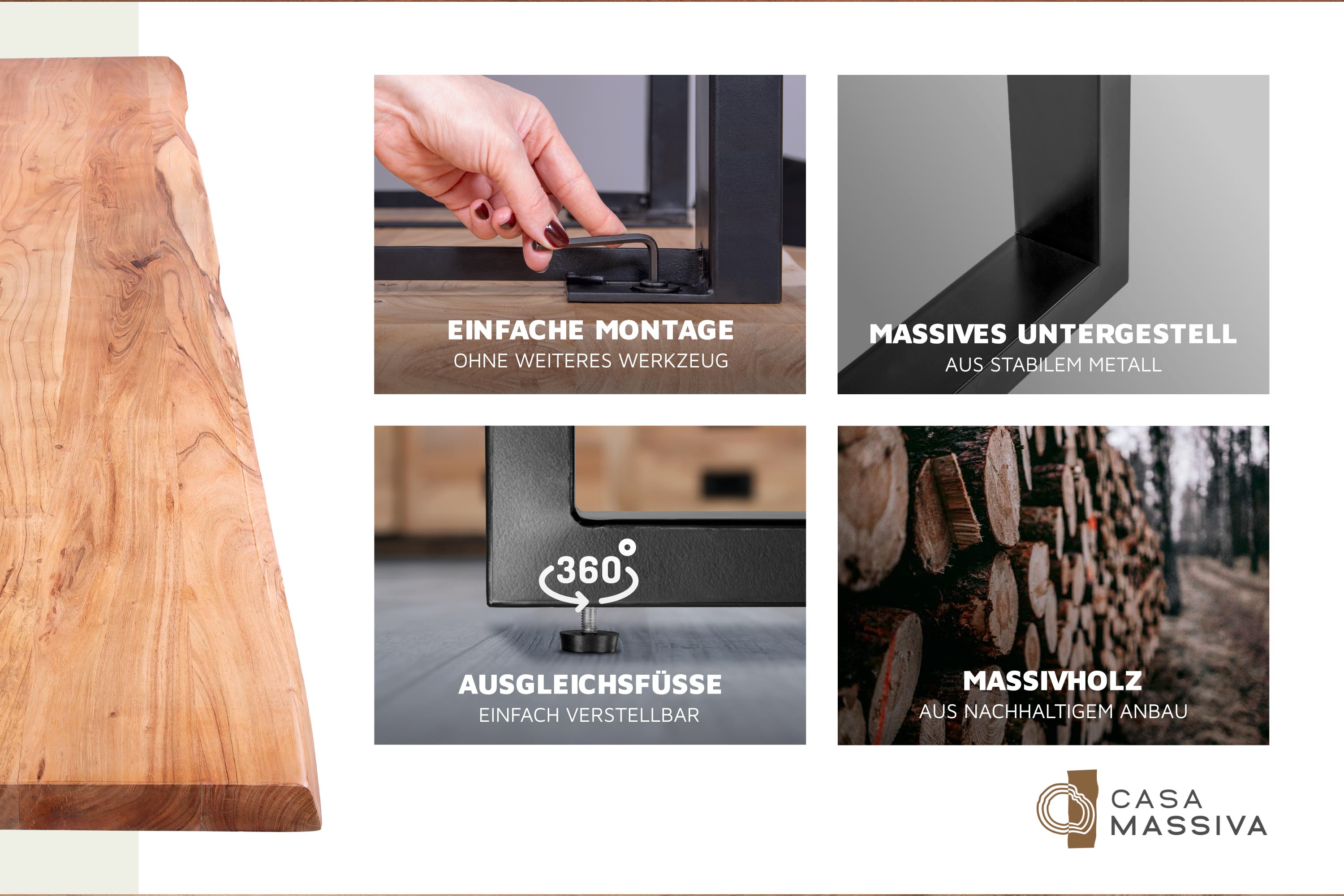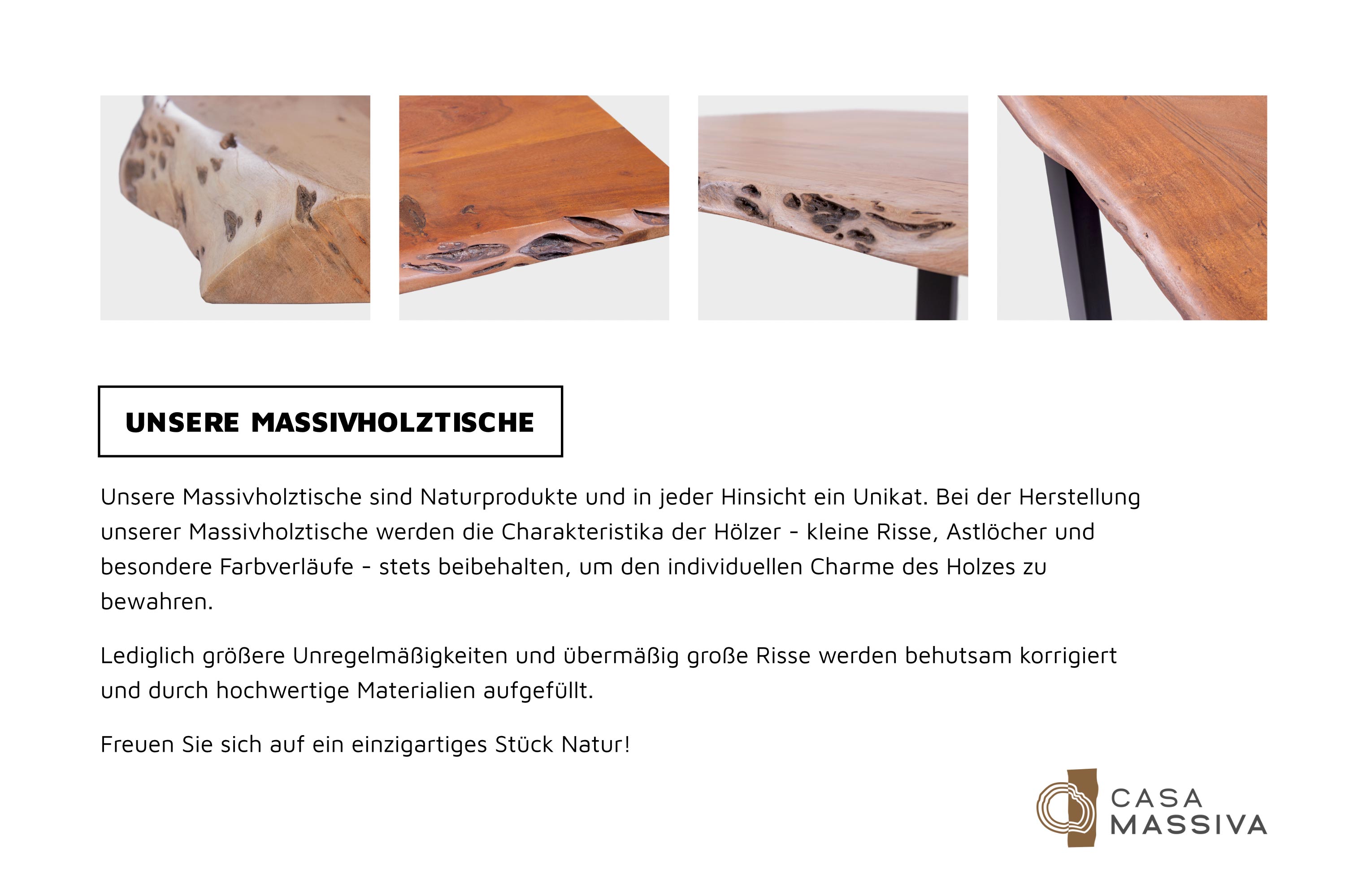 Entdecke die Welt der hochwertigen Baumkantentische bei Casa Massiva und lass dich von der Schönheit und Einzigartigkeit unserer Möbel verzaubern. Bring Wärme, Stil und Nachhaltigkeit in dein Zuhause – mit Möbeln, die Geschichten erzählen und ein Leben lang Freude bereiten.