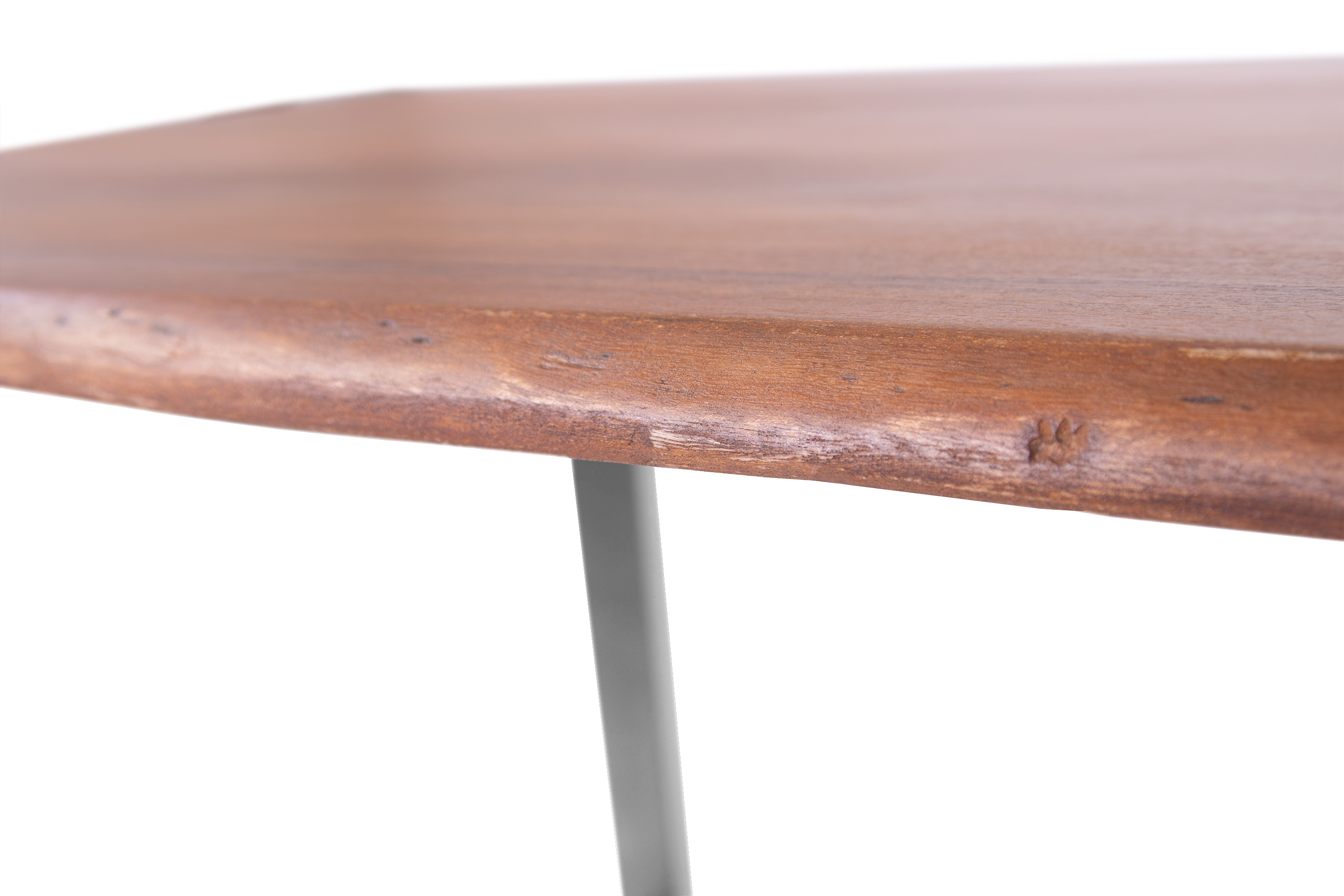 Individuelle Holzbewegung – Durch das natürliche Arbeiten des Holzes zeigt sich eine leichte Anpassung der Verleimung, die die handwerkliche Qualität und Einzigartigkeit des Tischs betont.