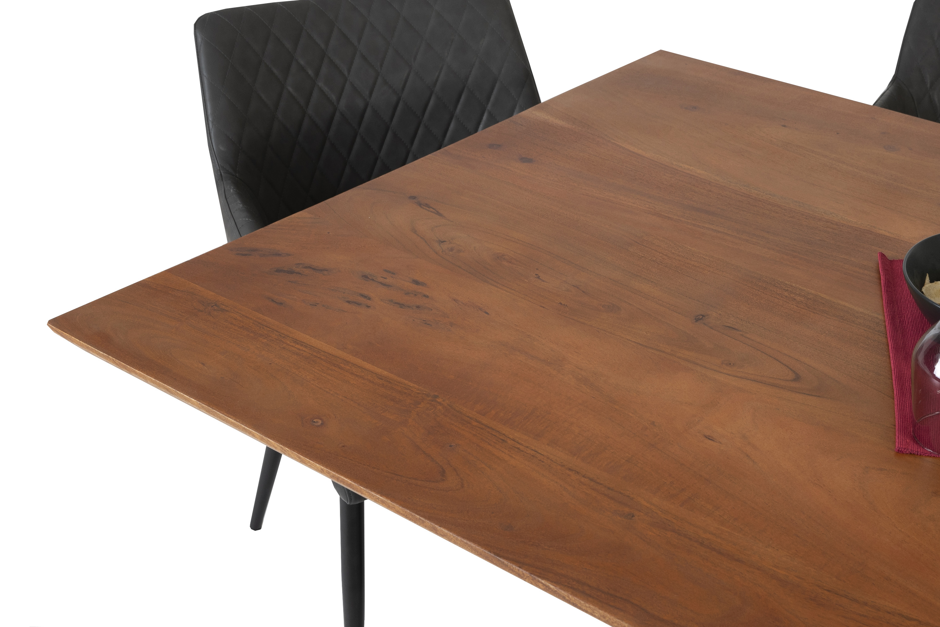 Trendiger Esstisch Abby, 26 mm Tischplatte mit Schweizer Kante, Akazienholz massiv + naturfarben/nussbaum, Spider-Gestell Schwarz