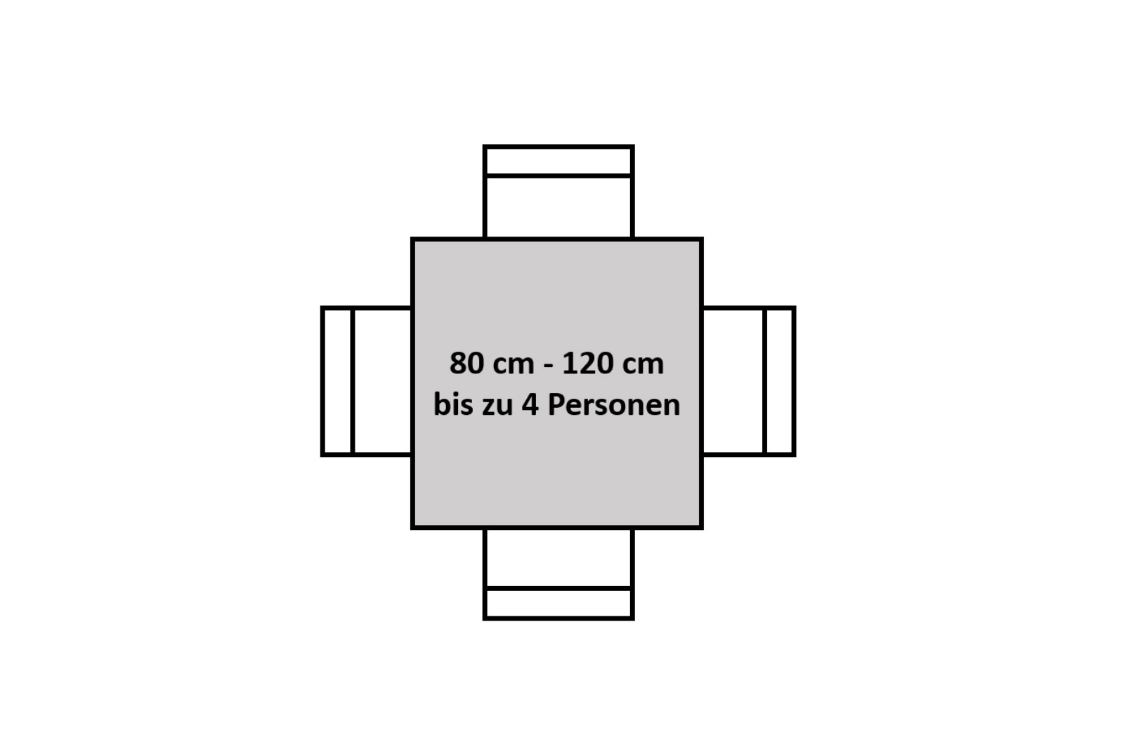 - Der 120 x 80 cm große Esstisch beeindruckt durch die 26mm starke Tischplatte mit Schweizer Kante.