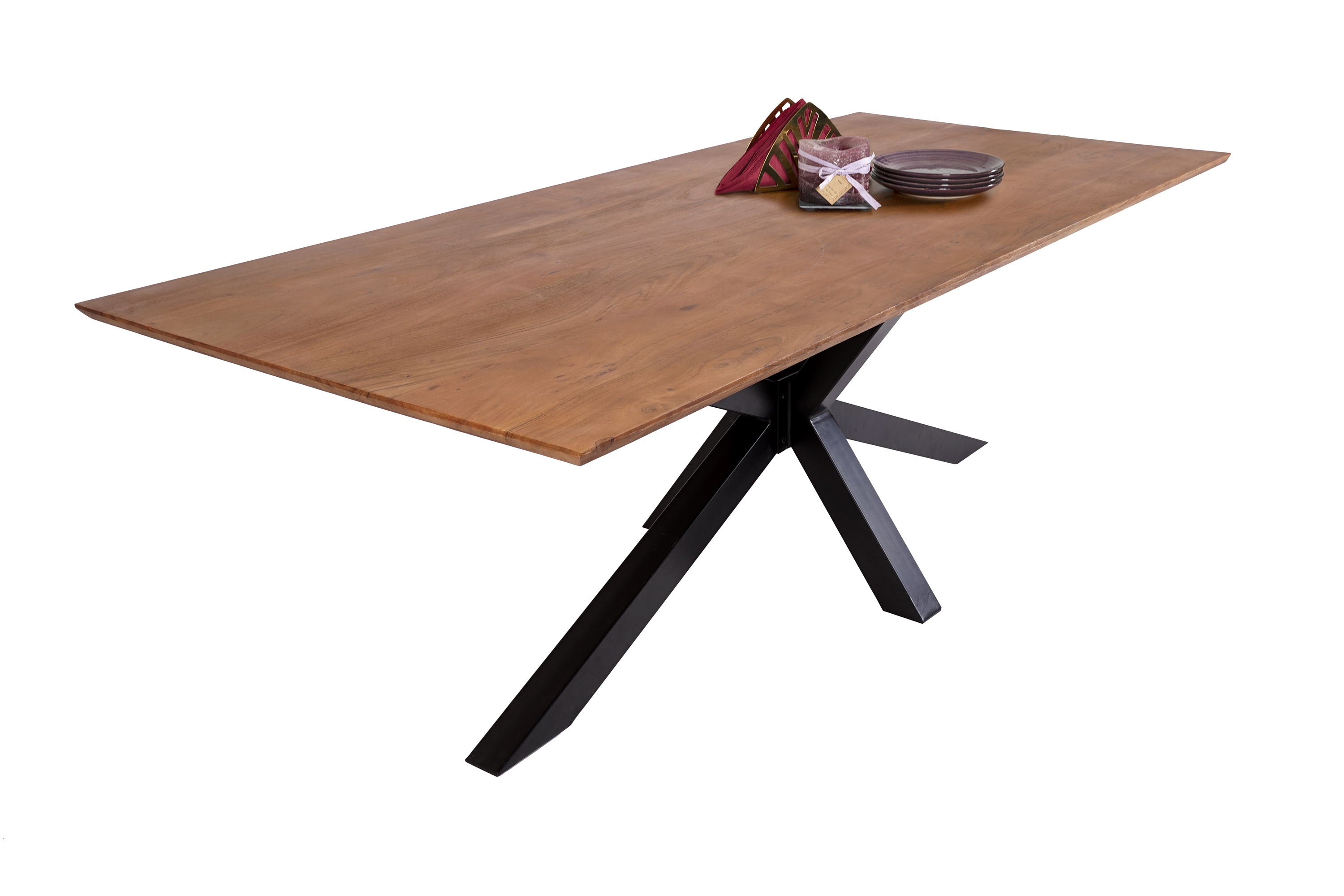 Esstisch Akazie massiv Schweizer Kante Spider-Gestell ABBY